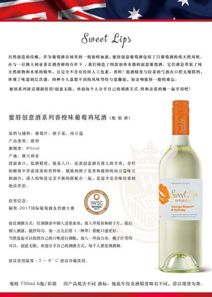 “蜜唇創(chuàng)意酒系列”香橙味葡萄雞尾酒(配制酒)