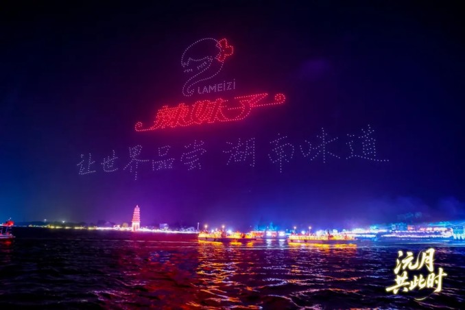 本次啟動大會引人注目的環節之一——無人機表演中,辣妹子品牌形象驚艷亮相。數百架無人機在夜空中變幻出辣妹子品牌標識和產品形象,與洞庭湖夜景交相輝映,展現出現代科技與傳統美食文化的結合。